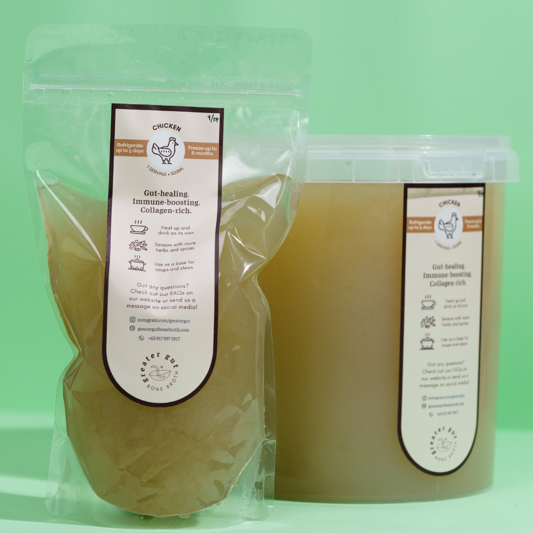 *BESTSELLER!* Our chicken broth is made with chicken bones, choice vegetables, and aromatic herbs and spices. This tastes like a lightly seasoned chicken tinola. Great to drink on its own or with additional spices, and versatile enough to use as a nutrient-rich base for soups, stews, and other dishes! You can also supercharge your broth with our add-ons: Turmeric & Cayenne Spice Pack and MCT Oil.